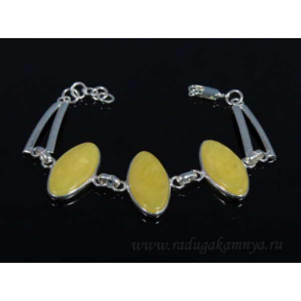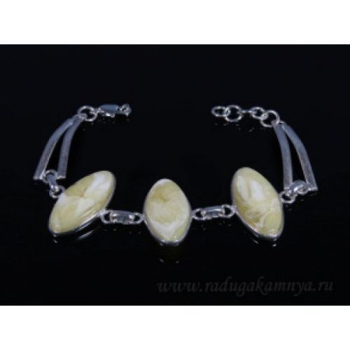 Браслет с янтарём в посеребрении рис 16*31мм медово-молочный, 20см
