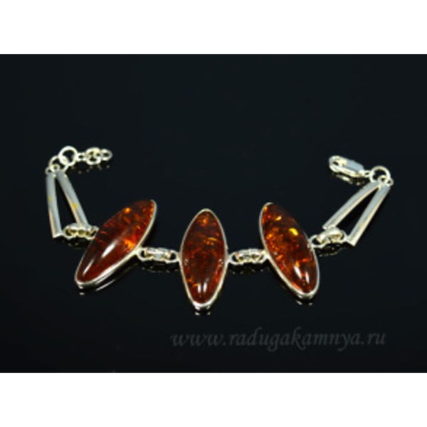 Браслет с янтарём в посеребрении рис 41*14мм коньячный