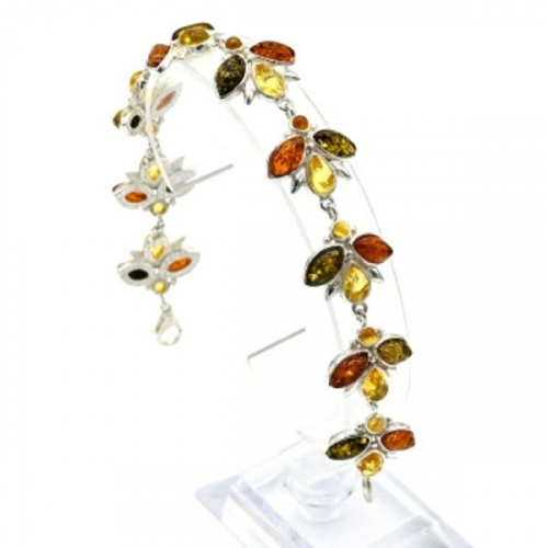 Браслет с янтарём в посеребрении трилистник 18*22мм цвет ассорти, 20см