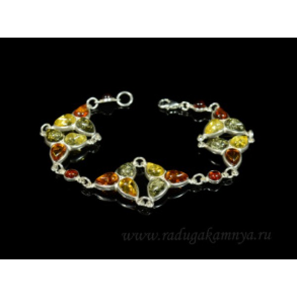 Браслет с янтарём в посеребрении "трилистник" ассорти, 20см