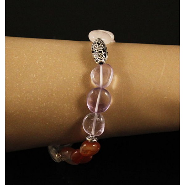 Браслет самоцветы (аметист, сердолик, горный хрусталь, авантюрин зеленый, кварц розовый) с мет. бусиной