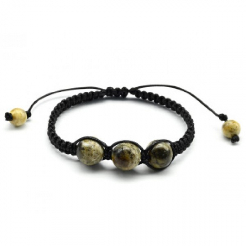 Браслет шамбала мужской с 3 шариками 14мм из янтаря цвет зеленый, 16см