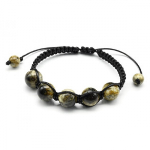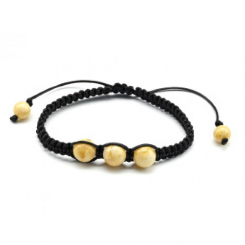 Браслет шамбала с 3 шариками 11мм из янтаря цвет молочный, 17см