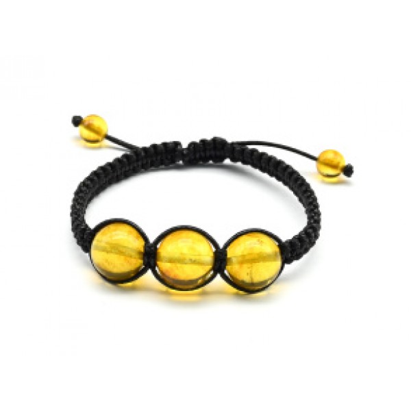 Браслет шамбала с 3 шариками 14мм из янтаря цвет медовый, 16см
