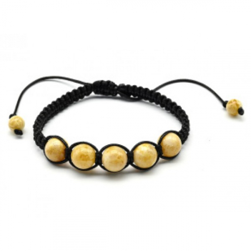 Браслет шамбала с 5 шариками 11мм из янтаря цвет молочный, 17см