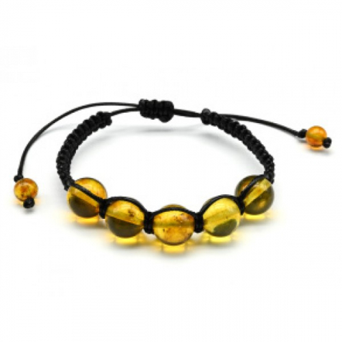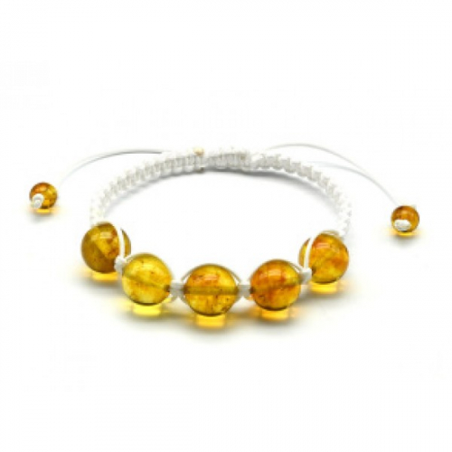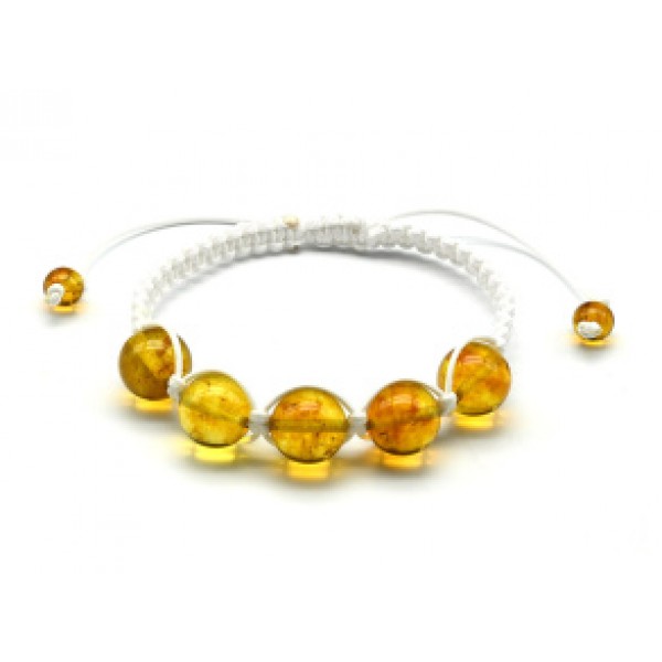 Браслет шамбала с 5 шариками 14мм из янтаря цвет лимонный, 16см