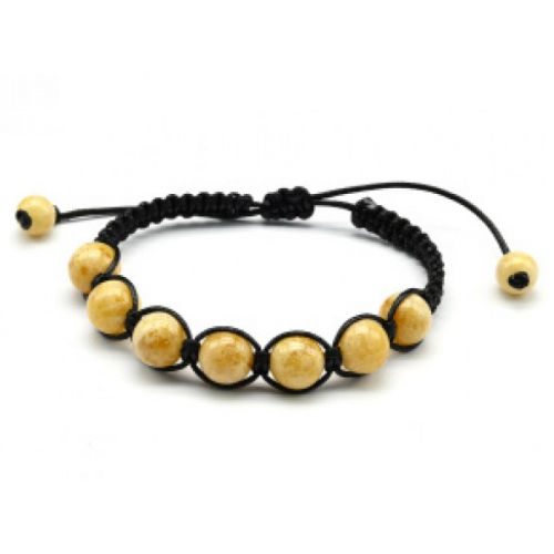 Браслет шамбала с 7 шариками 12мм из янтаря черного, 16см