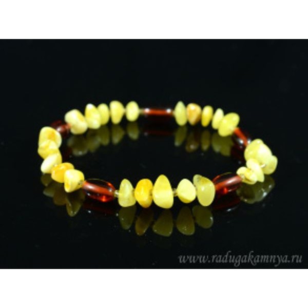 Браслет янтарный крошка с овалом цвет молочный, коньячный