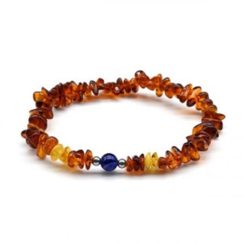 Браслет янтарный с агатом тонированным шарик 6мм цвет коньячный, 17см.