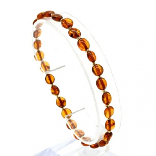 Браслет янтарный с бисером галтовка 6*7мм цвет коньячный, 17см