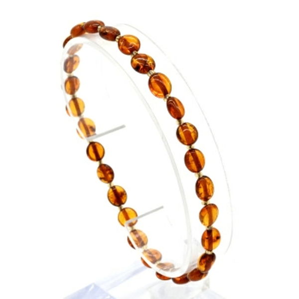Браслет янтарный с бисером галтовка 6*8мм цвет светло-коньячный, 17см