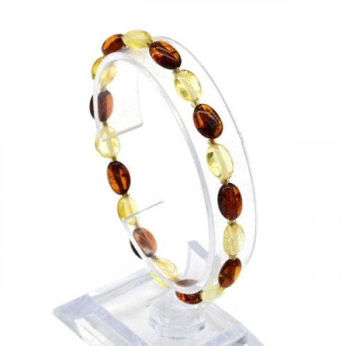 Браслет янтарный с бисером галтовка 7*8мм цвет лимонный, молочный, коньячный, 17см