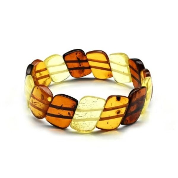 Браслет змейка из янтаря цвет лимонный, св.коньячный, коньячный, 16см