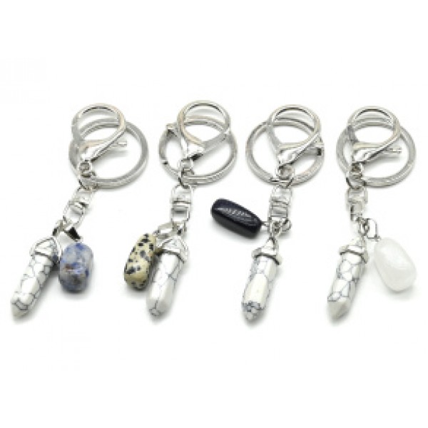 Брелок с карабином и подвеской Кристалл 12*40мм из кахолонга искусственного с галтовкой