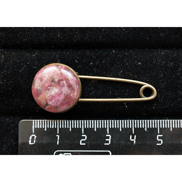 Брошь-булавка с турмалином розовым (кабошон-мозаика), круг 18мм, цвет бронза