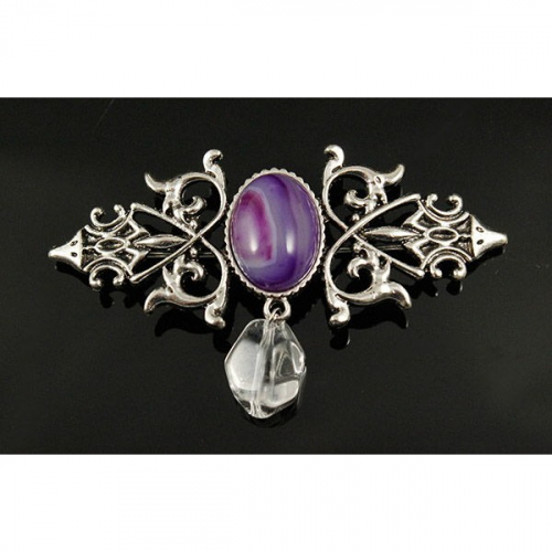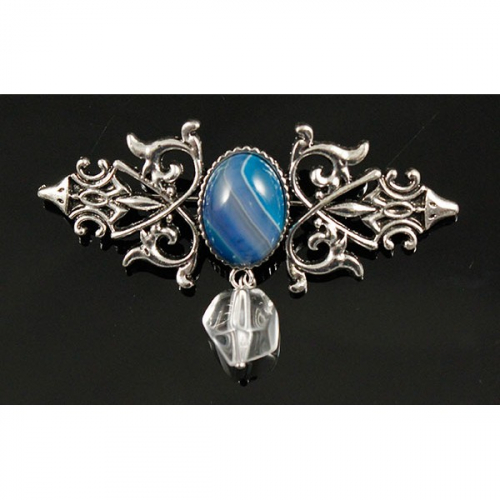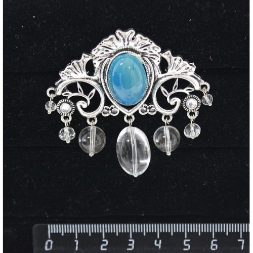 Брошь из агата синего (тонировка) "трюмо", овал 18х13мм, со стразами и подвесками из горного хрусталя