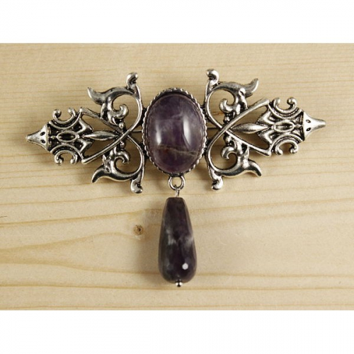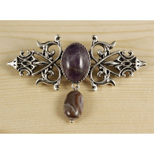 Брошь из аметиста "вензель", основа 70х2.4мм, овал 18х13мм, подвеска аметист