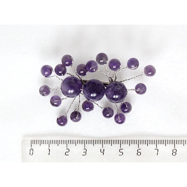Брошь из аметиста "веточки", шарик 12 и 6 мм