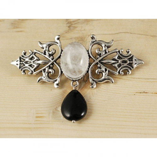 Брошь из горного хрусталя "вензель", основа 70х2.4мм, овал 18х13мм, подвеска горный хрусталь