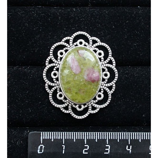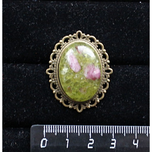 Брошь из хризолита и турмалина (кабошон-мозаика), овал 25х18мм, "ромашка"