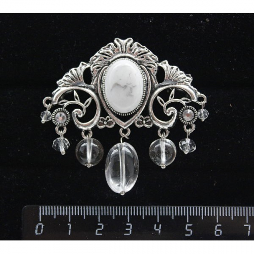 Брошь из каулита (имит. кахолонга) "вензель", основа 70х2.4мм, овал 18х13мм, подвеска яшма далматиновая
