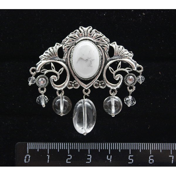 Брошь из каулита (имитация кахолонга) "трюмо", овал 18х13мм, со стразами и подвесками из горного хрусталя