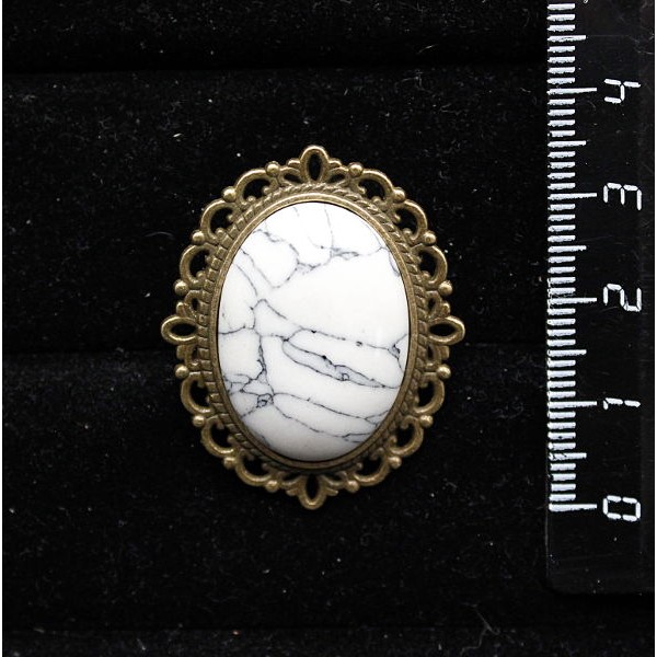 Брошь из каулита, овал 25х18мм, оправа с узором цвет бронза