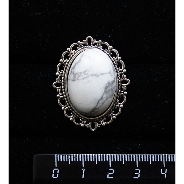 Брошь из каулита, с ажурным контуром, цвет ант. серебро, овал 25х18мм