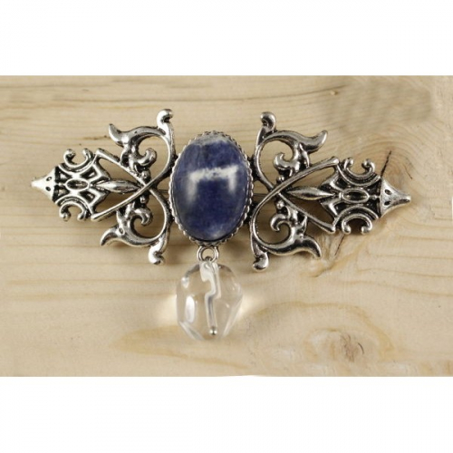 Брошь из сердолика "вензель", основа 70х2.4мм, овал 18х13мм, подвеска горный хрусталь