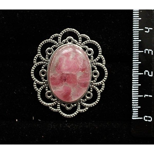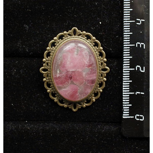Брошь из турмалина розового (кабошон-мозаика), овал 25х18мм, "ромашка"