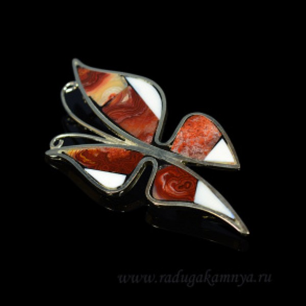 Брошь мозаика "Бабочка" из яшмы и кахолонга, 62*28мм.