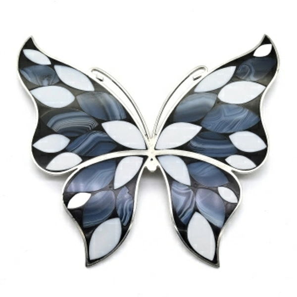 Брошь с агатом тиманским и кахолонгом "Бабочка" 85*77мм.