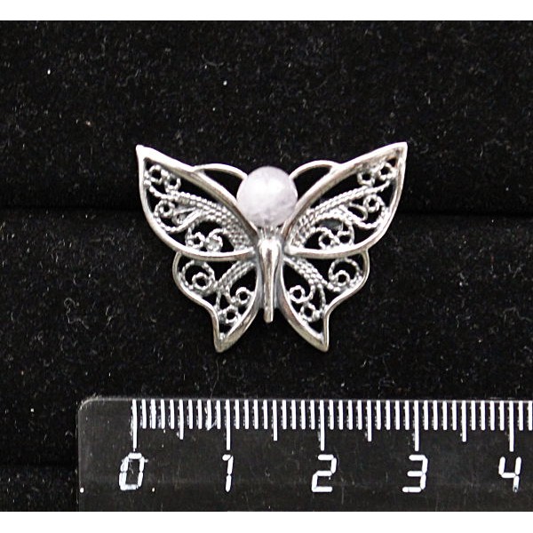 Брошь с аметистом "бабочка " в мельхиоре, 29х22мм