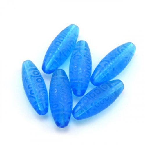 Бусина Дзи "Два глаза" из горного хрусталя тонированного 10*30мм, цвет голубой, 1 бусина