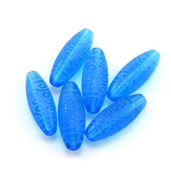 Бусина Дзи "Двадцать один глаз" из горного хрусталя тонированного 10*30мм, цвет голубой, 1 бусина
