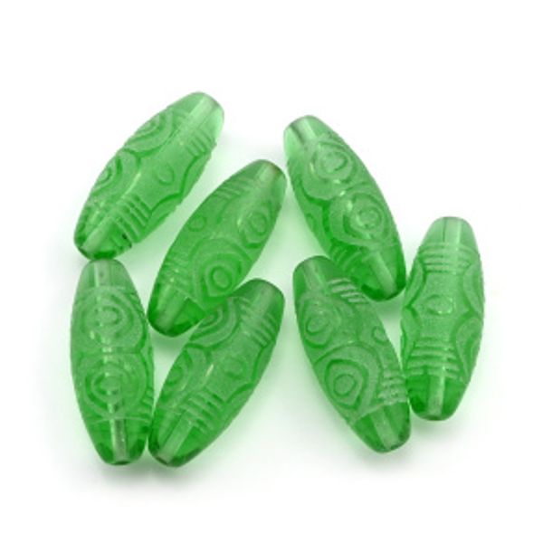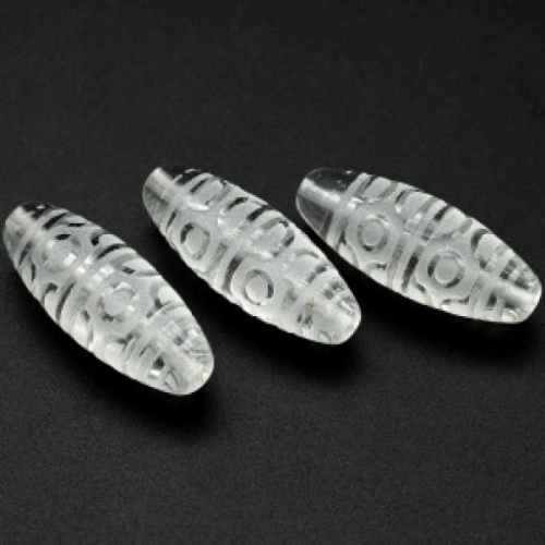 Бусина Дзи "Шесть глаз дракона" из горного хрусталя тонированного 10*30мм, цвет зеленый, 1 бусина