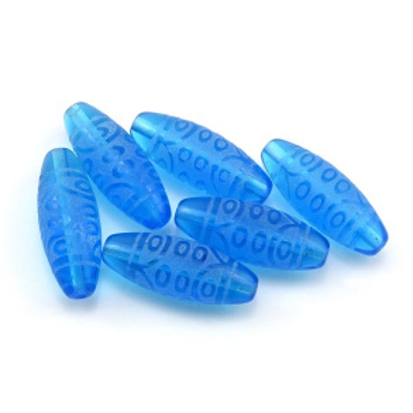 Бусина Дзи "Восемнадцать глаз" из горного хрусталя тонированного 10*30мм, цвет голубой, 1 бусина