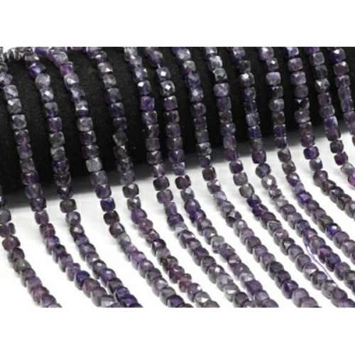 Бусины из аметиста кубик гр.5мм, 37см, 76 бусин