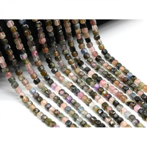 Бусины из турмалина кубик гр.4мм, 39см, 97 бусин