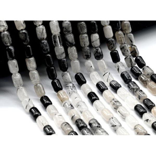 Бусины из турмалинового кварца (волосатик) бочонок 6*9мм, 39см, 42 бусины