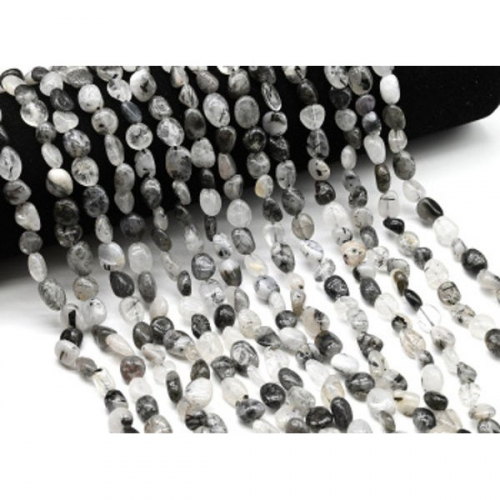 Бусины из турмалинового кварца (волосатик) галтовка 5*8мм, 38см, 51 бусина