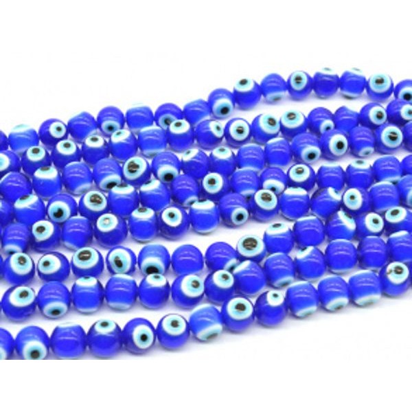 Бусины от сглаза из муранского стекла шарик 10мм цвет синий, 33,5см, 34 бусины
