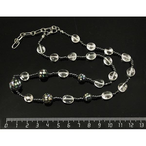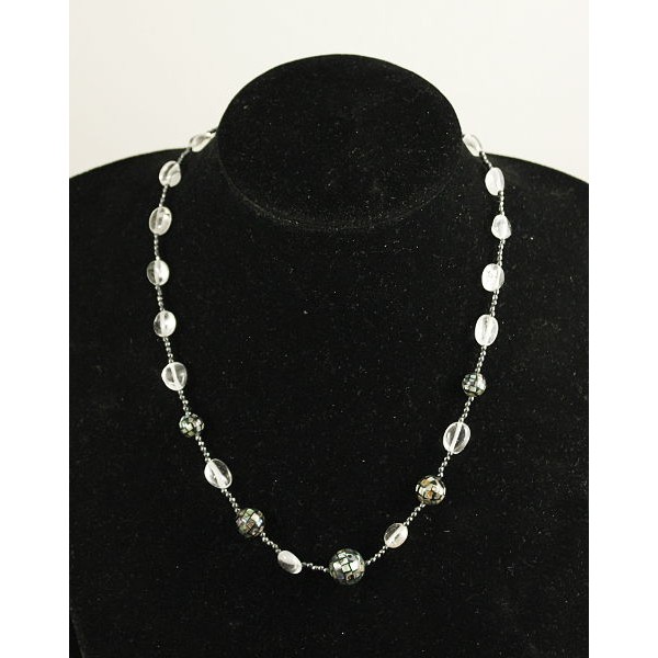 Бусы гелиотис (шарик мозаика), горный хрусталь (овалы), гематит (шарик 2мм огранка) 44 см