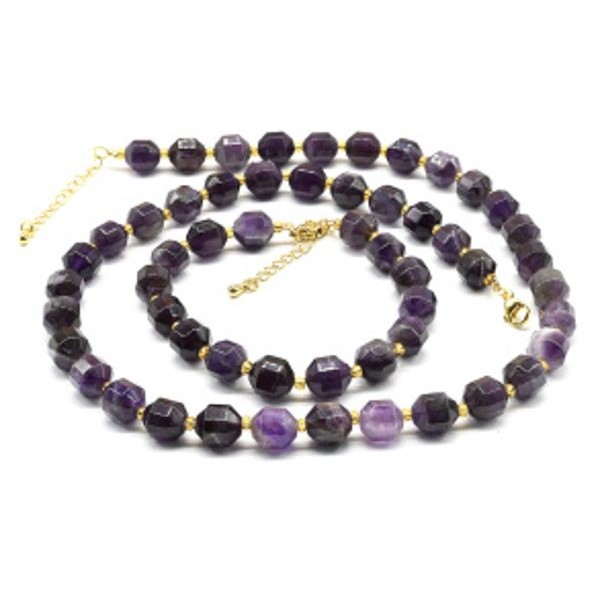 Бусы и браслет из аметиста граненые 8*10мм, 50см, 20см