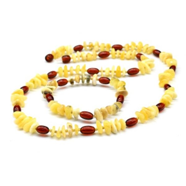 Бусы и браслет из янтаря крошка с овалом молочный, коньячный, 60см