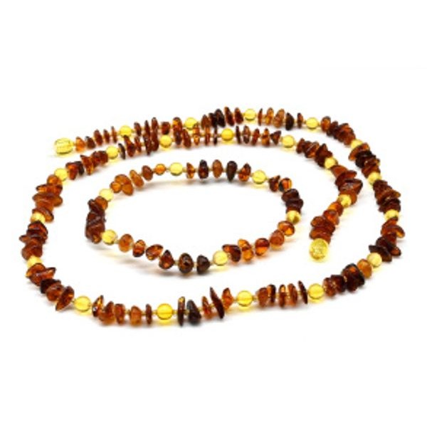 Бусы и браслет из янтаря крошка с шариком коньячный, лимонный, 60см