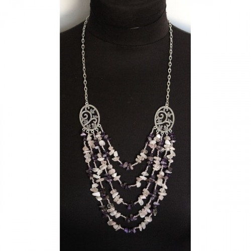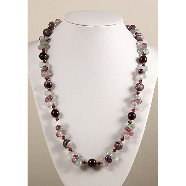 Бусы из флюорита (косточки), граната и аметиста (шарик 10мм) 50см