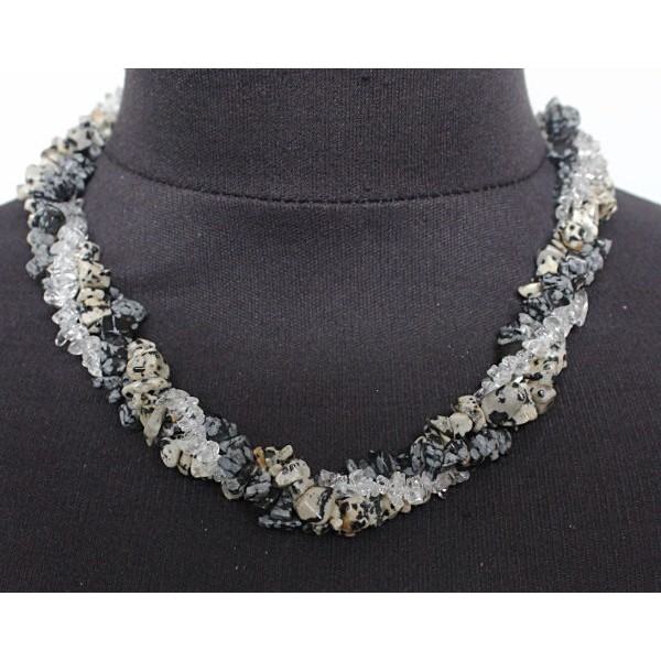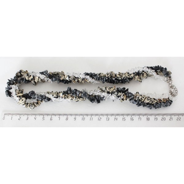 Бусы из горного хрусталя, +яшма далматиновая и обсидиан снежный, галтовка, жгут 3 нити