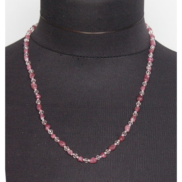 Бусы из турмалина розового, галтовка+хрусталь