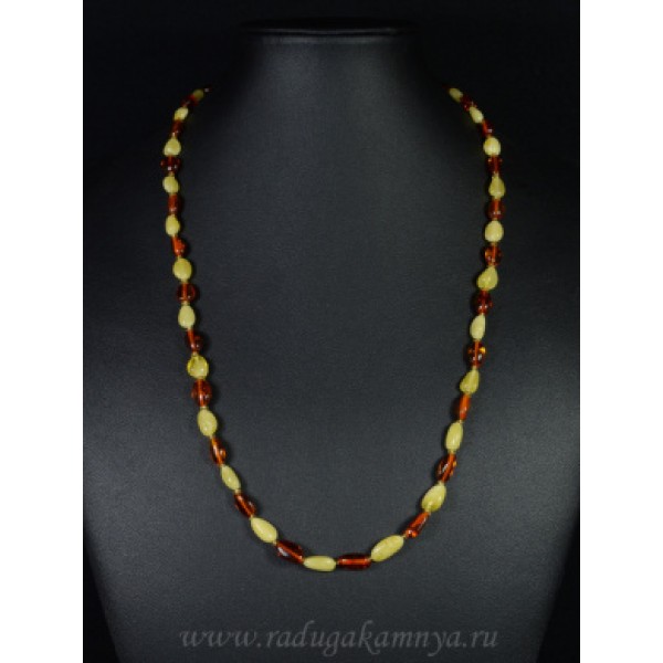 Бусы из янтаря галтовка молочно-медовый, св.коньячный, 55см
